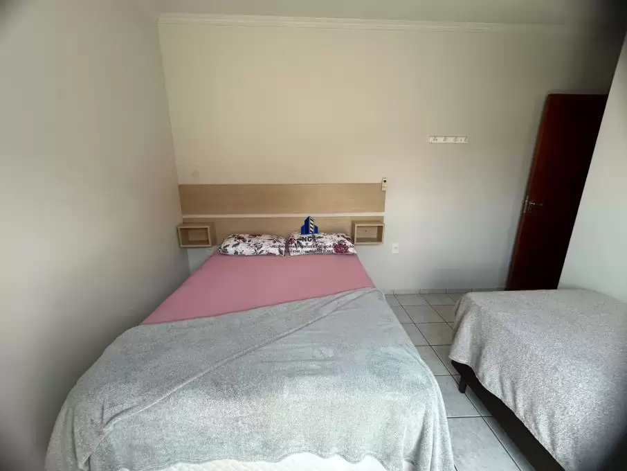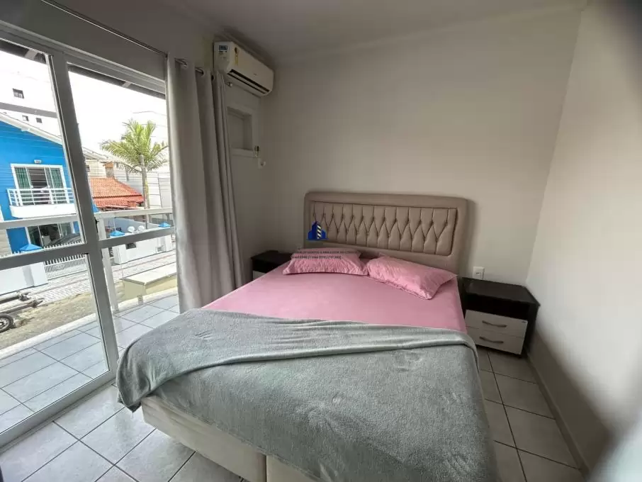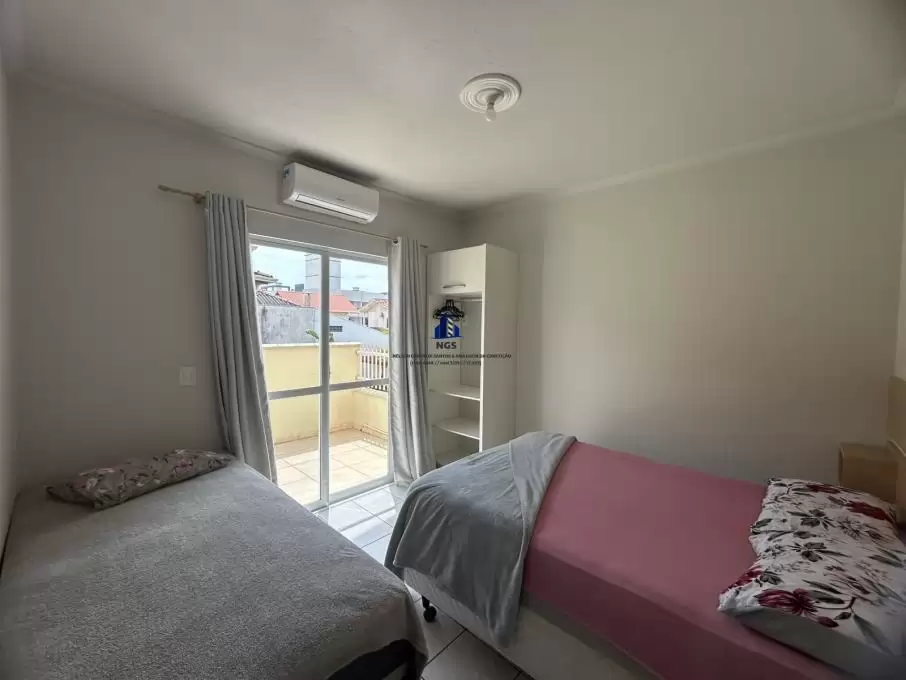 01 quarto com 01 cama de casal e 01 de solteiro, com ar condicionado split e sacada