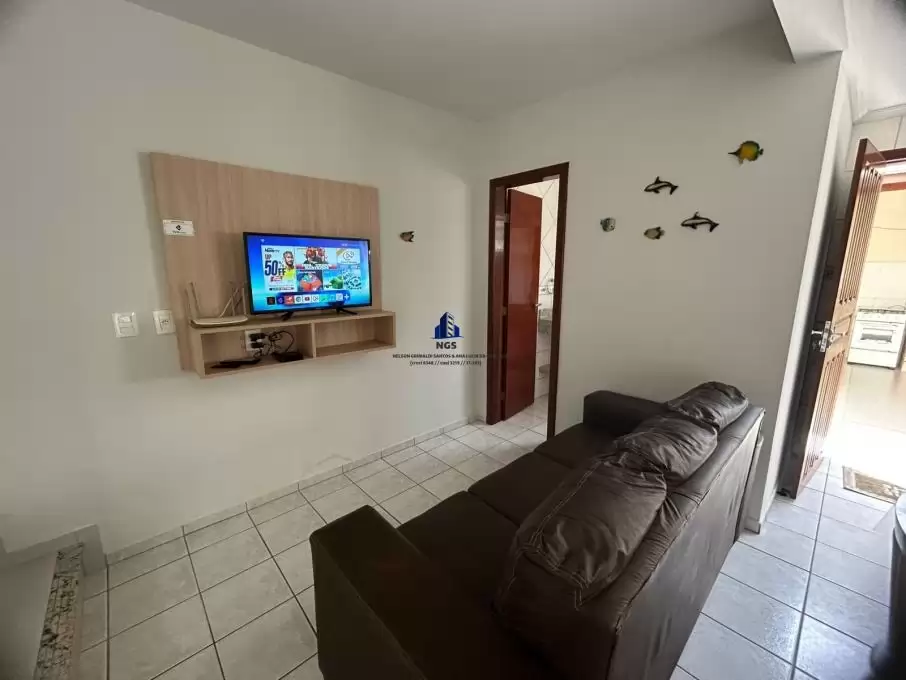 Sala completa, com sofá confortável e TV LCD com canais da OI